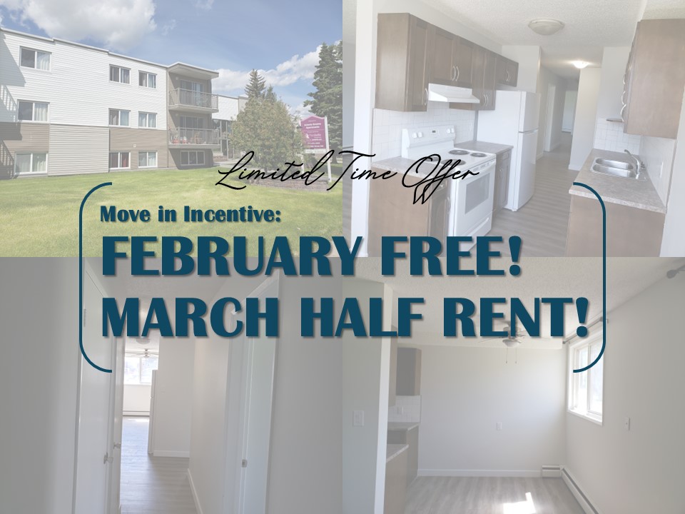 MOVE IN INCENTIVE : FEBRUARY FREE AND PAY MARCH HALF RENT!
